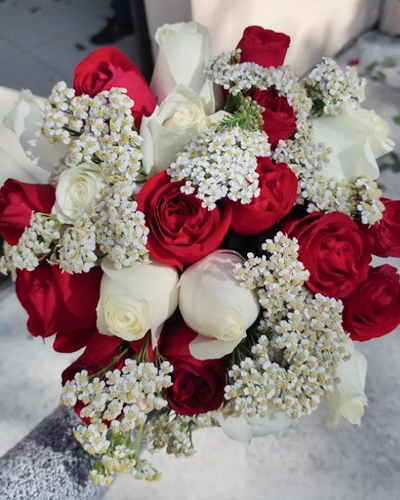 Um arranjo delicado e romântico, combinando a suavidade das rosas com a beleza vibrante das astromélias, perfeito para um dia inesquecível.